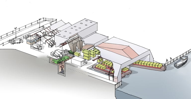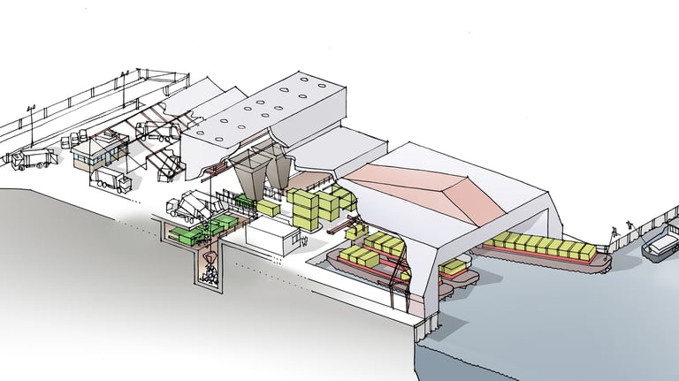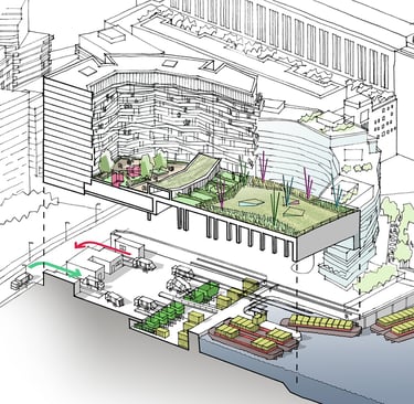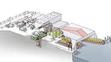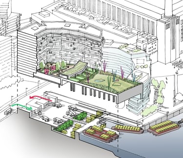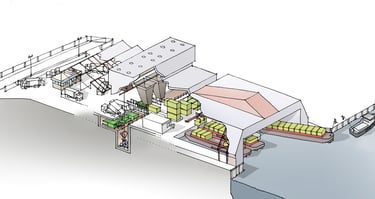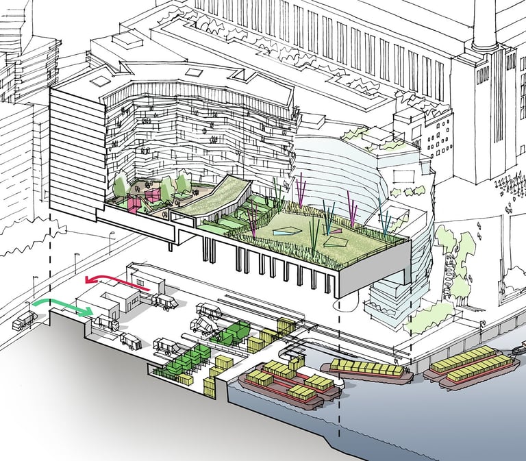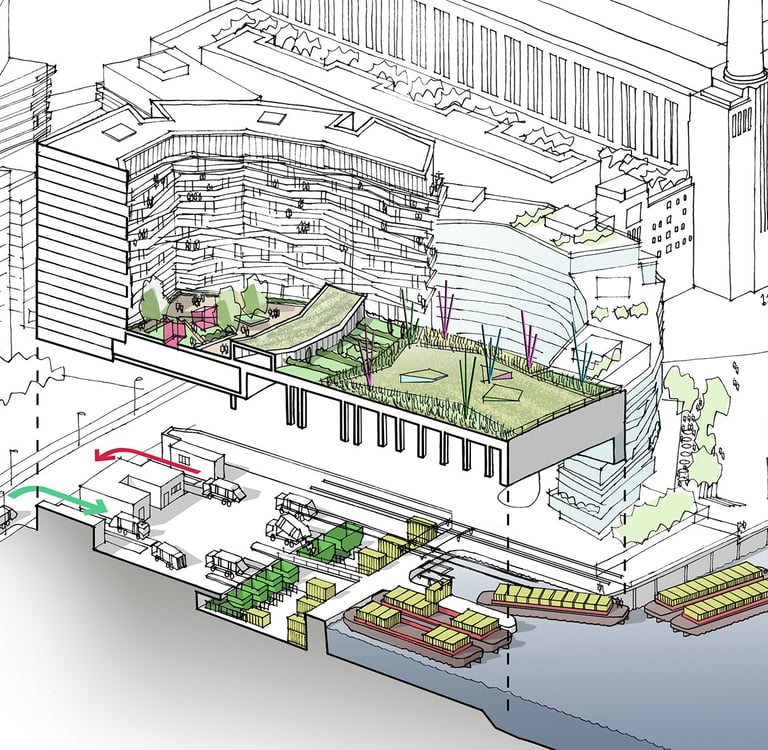 When it became clear "Apple" were to be the single tenant for the entire Power Station office - produced a credible pitch for an air-rights office with overhead structure, where the office massing itself was the bridge across the wharf